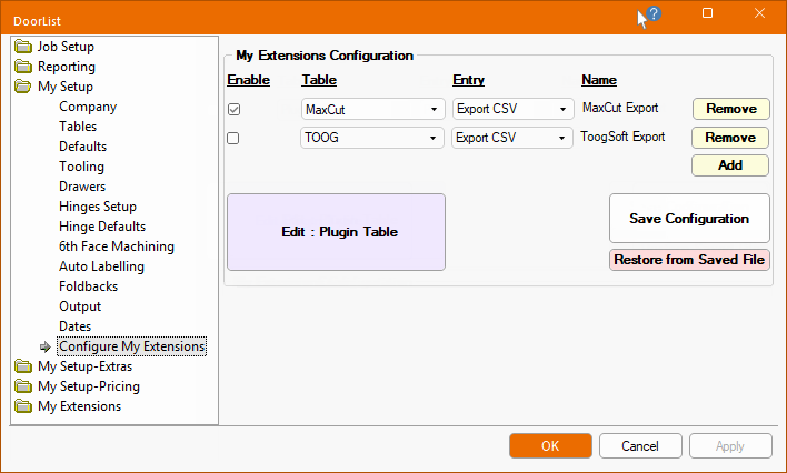 Multiple 'PlugIn' tables can be setup and configured on the Setup > Configure My Extensions page.