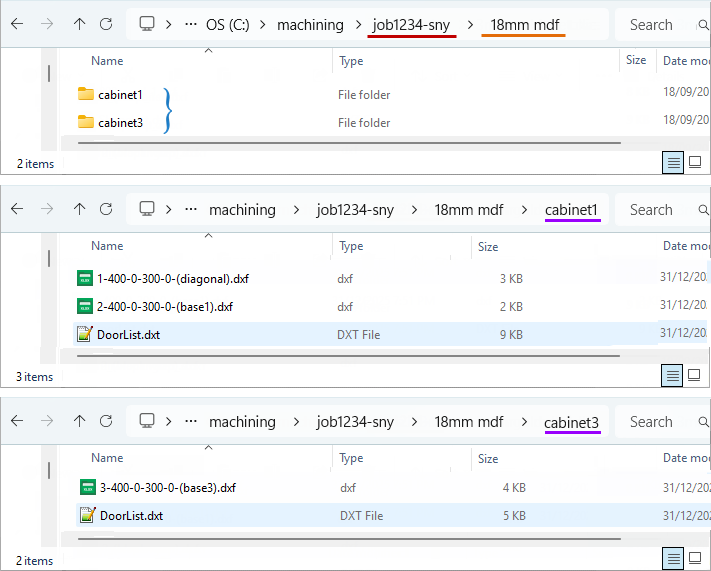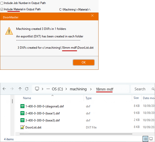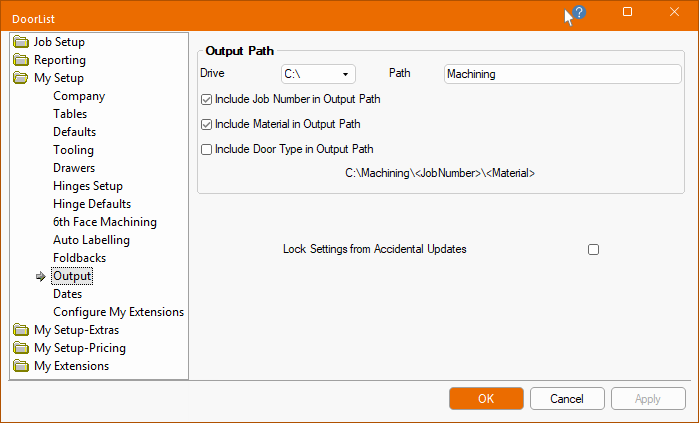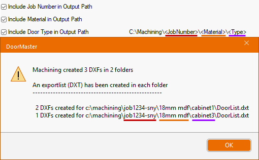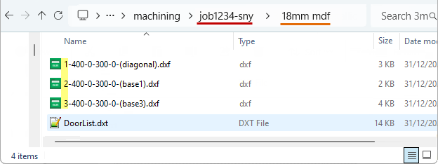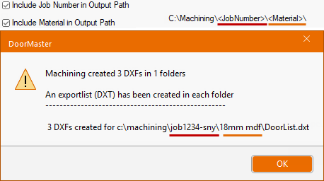 Ability to designate the Drive, Path location of where the DXT files are to be output to, ready for nesting and toolpathing in EzyNest. The path will automatically include the chosen material and can be extended to Include Job Number if required. A sample of selected path will be displayed.