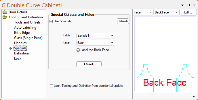 The Tooling and Definition > Specials page at door level
