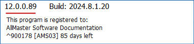 When CabMaster Software products are first started, the splash screen and About dialog contains general information describing the current application, including the Version number, as per the following example.
