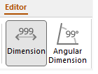 This set of controls is used to specify and display arrows on the end of dimension lines. The icon button on the left shows a dimension line with the arrows highlighted to indicate that it is used to turn arrows on and off.