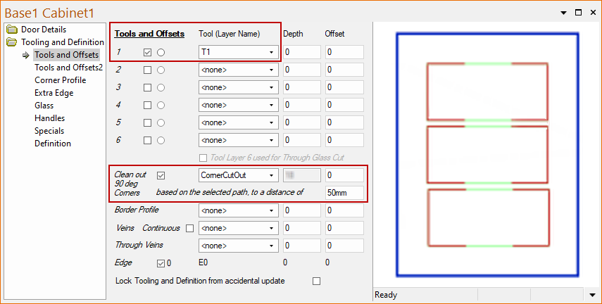 The door now has a toolpath to clean out corners, as shown. Note that an offset has been applied for a better result.