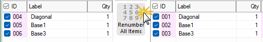 When the Renumber All Items button is clicked, the doors have been assigned ID's 001 to 003.
