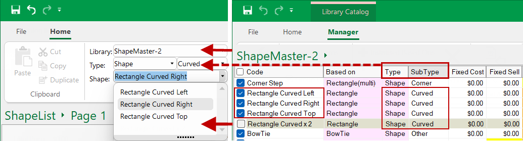 The door selection can be filtered by Library, Type and Sub-Types.