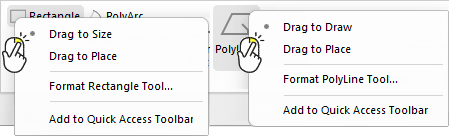 If you are drawing a line, such as a PolyLine (i.e. not a 2D door), then instead of calling the first option Drag to Size it is called Drag to Draw.