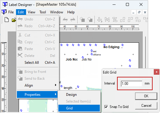 If you need to adjust the size of the label or the name of the label design, this can be done in the Design Properties of the label.