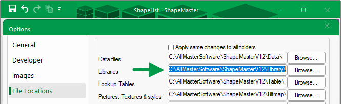 In order to add any new data fields to the exported machining files, you will need to adjust the LabelXMLExtras.txt file in the Library folder of you program's installed location. To locate, go to File Locations [F10] in the CabMaster Software™ application and copy the Libraries file location into Windows Explorer.