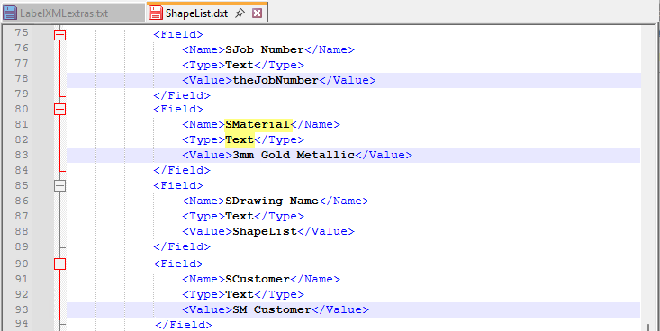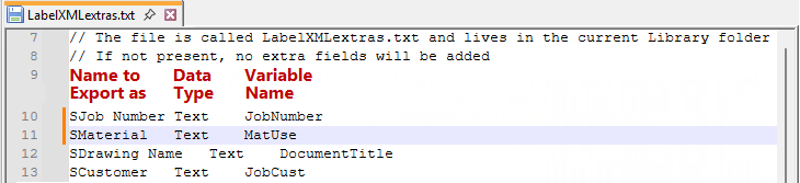 - Then you will just need to add that variable into the LabelXMLExtras.txt file, as shown below.