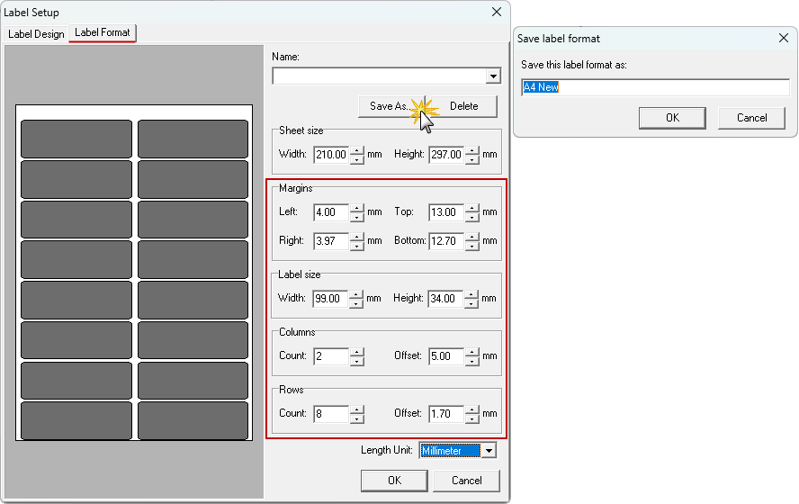 Label Format - Modified and Saved
