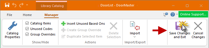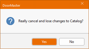 Cancel changes if you decide not to save any of the changes made. A message will be presented to ensure that you really want to lose all changes to the Catalog.