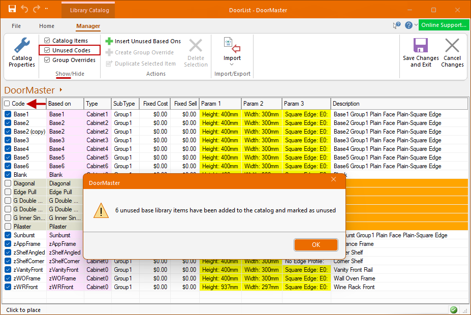 - finally untick the 'Unused Codes' which allows you to check your selection in the Library Catalog Manager.
