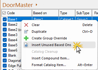 One way to Insert Unused Based Ons is by using the right click menu, as shown.