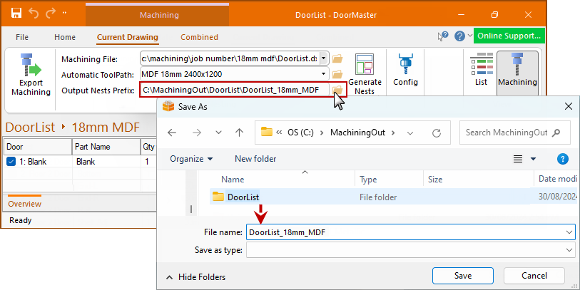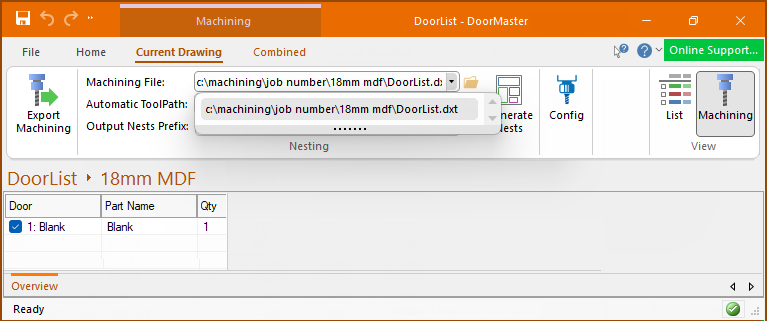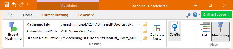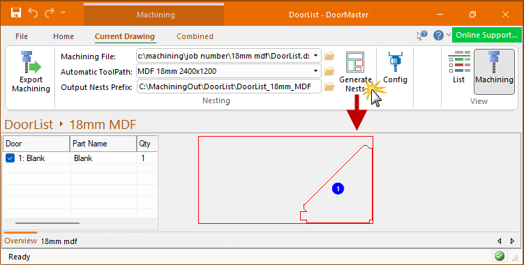 Machining View fully integrates with EzyNest, allowing the designer of the parts to generate CNC Code and Label information at the push of a button all from within DoorMaster. This lets you see the nested layouts without the need to open another software package. It also eliminates downtime and any unforseen machining issues.