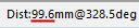In the following the Status bar Dist shows a length of 99.6mm