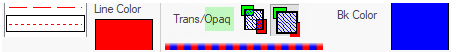 You can only set the background colour of an object when the Trans/Opaq controls are enabled and set to Opaque. Clicking the coloured preview box opens the Color Select dialog where you can pick a preset colour or define your own. The background colour is then used to fill in the gaps of the line or fill pattern, instead of drawing whatever is behind the object.