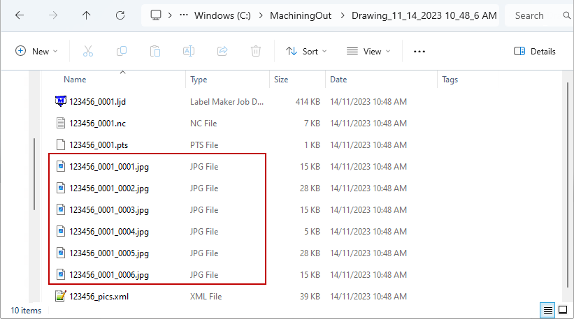 If you have an AutoLabeling CNC (that prints the labels onto the parts as it cuts them out) EzyNest will create .JPGs or .ZPL images (or similar) instead - those images should end up in the same place as the .LJD files.