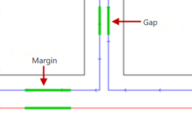 The margin is the distance from the edge of the plate (red line) to the centre of the toolpath of the nested part (blue line) i.e. part placement from the edge of the sheet. For the purpose of calculation, the edge of the plate (red line) is the centre of the tool if there was a margin of zero.